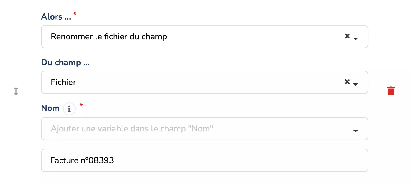 Une action permettant renommer un fichier. Cette action concerne les champs Image et Fichier.
