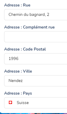 En édition, plusieurs champs apparaissent permettant de saisir l'adresse.