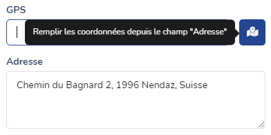 Dans certains cas, en fonction de vos besoins, vous pouvez coupler un champ de type Adresse à ce champ GPS.