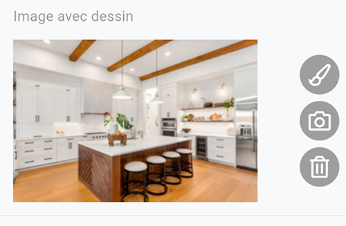Sur l'application mobile, cette champ possède une fonctionnalité qui permet à l'utilisateur de dessiner sur l'image afin d'y annoter des informations supplémentaires.