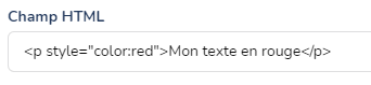 - HTML par défaut : Ce texte par défaut est prérempli lorsque le champ est affiché en édition et qu'il ne possède aucune valeur. Un menu déroulant est présent pour faciliter l'insertion de variables dynamiques ;