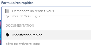 En édition, un menu déroulant permet de sélectionner un sous-formulaire provenant de n'importe quel module.