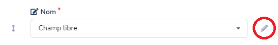 Lors de la configuration du champ, après avoir ouvert les options d'affichage (Icône de crayon), une fenêtre apparaît vous permettant de modifier les informations suivantes :